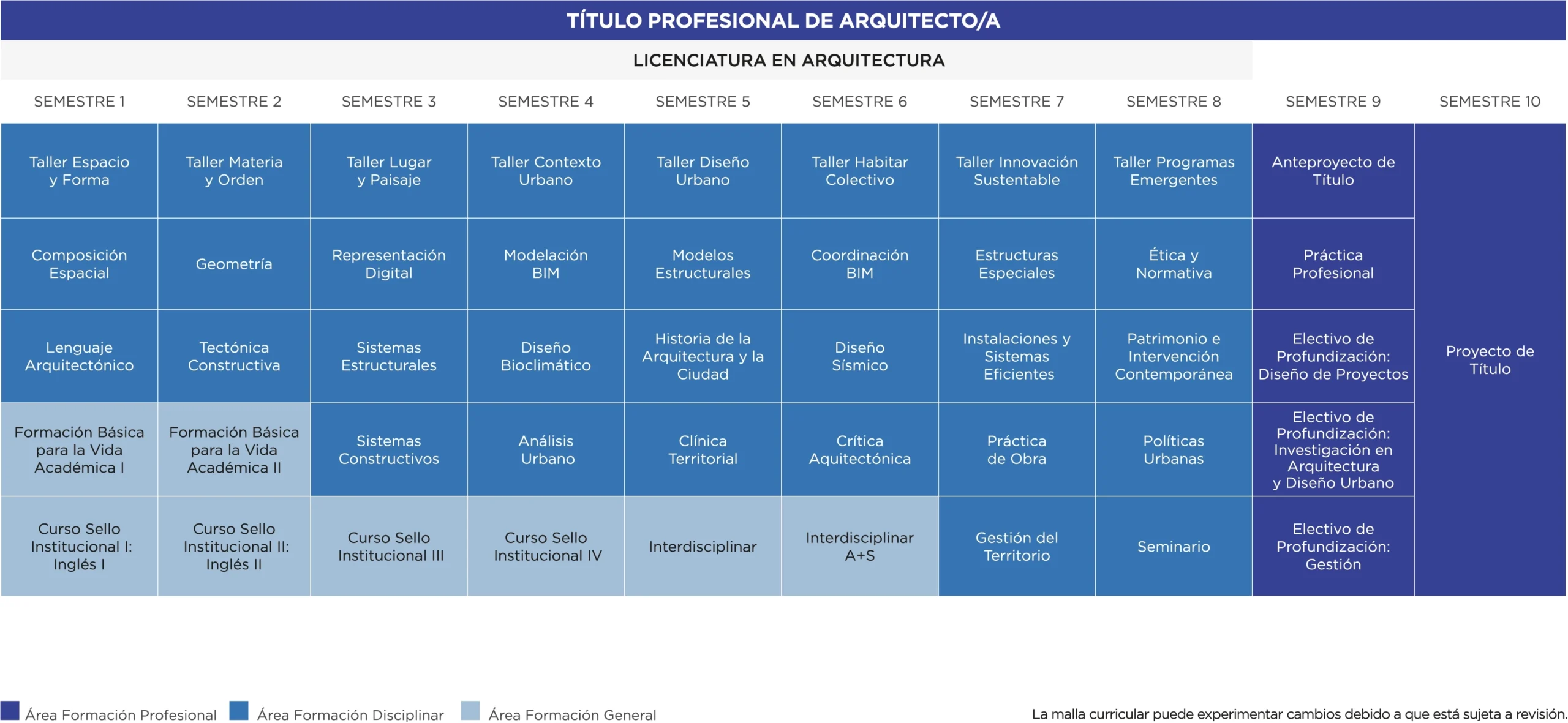La carrera cuenta con una duración de 10 semestres y una acreditación internacional de la Royal Institute of British Architects (RIBA) desde 1992. Formamos profesionales comprometidos/as con el diseño y la construcción sustentable y en el bienestar comunitario.