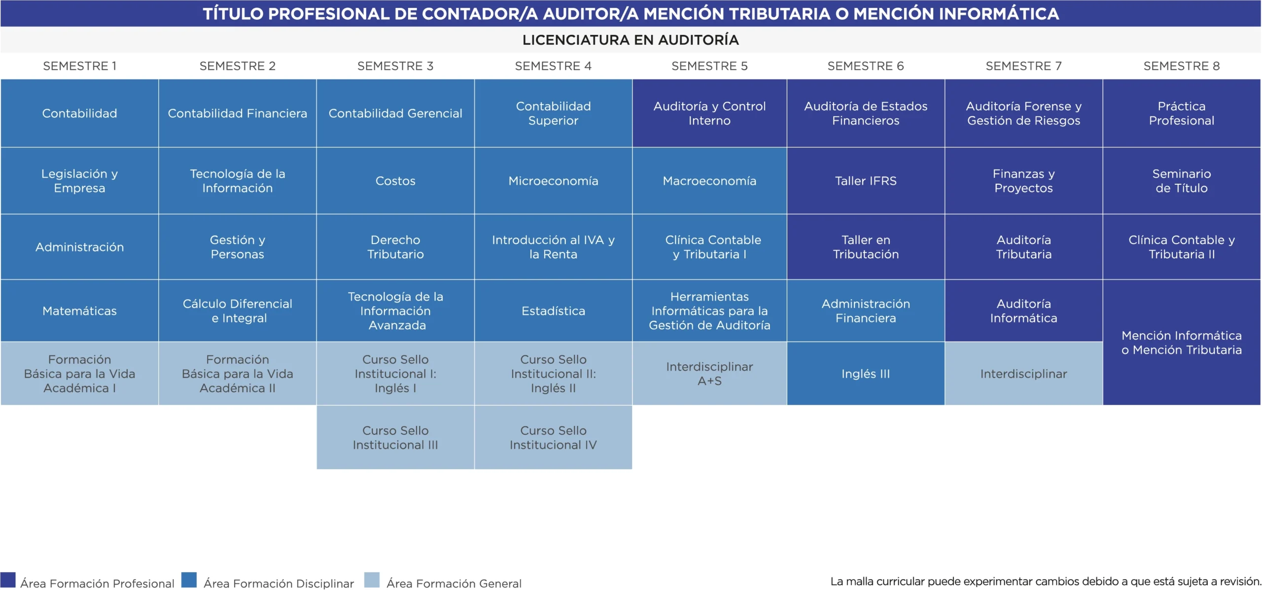 El plan de estudios potencia las habilidades y competencias de los/as estudiantes para formar a un profesional de excelencia, con un plan de estudios que incluye asignaturas como Auditoría Forense, Gestión de Riesgo y Clínica Contable y Tributaria, diseñadas para desarrollar competencias clave en los estudiantes.