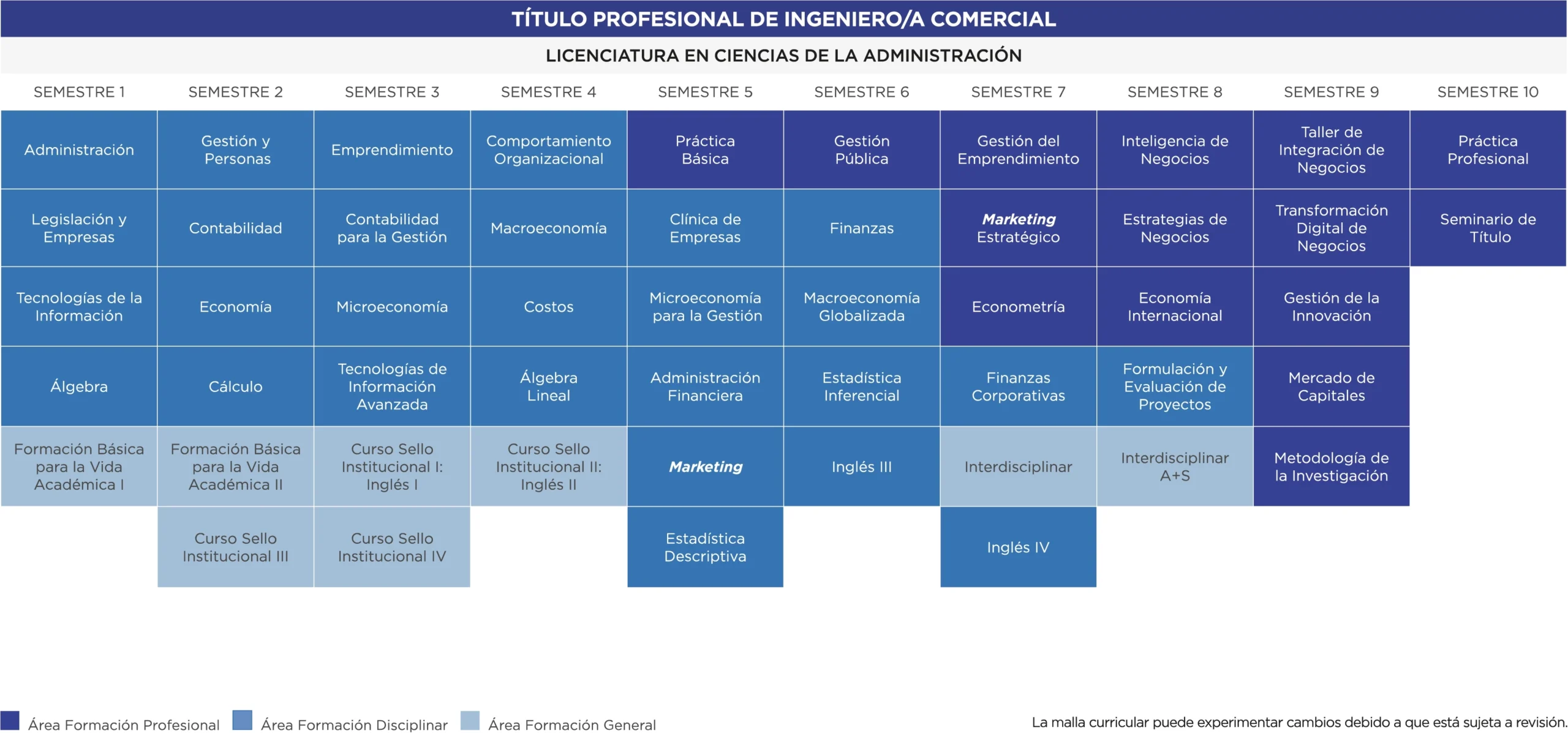 Nuestra carrera destaca por su enfoque práctico desde el primer año de estudio, vinculando a los/as estudiantes con las empresas y el mundo del marketing digital. La malla cuenta con una especialización en tecnologías de la información y transformación digital para potenciar las credenciales académicas de los/as estudiantes.